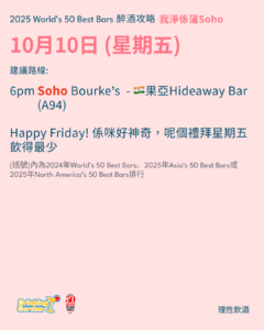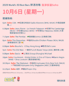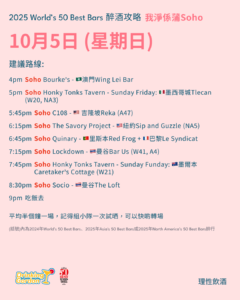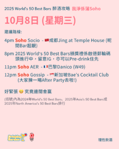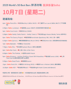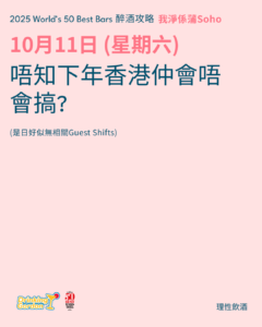 - 8pm 2025 World’s 50 Best Bars頒獎禮係啟德郵輪碼頭進行中,留意IG,亦可以Pre-drink住先